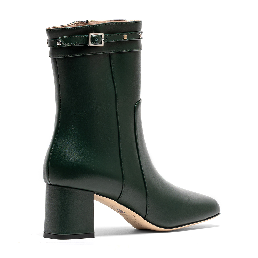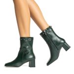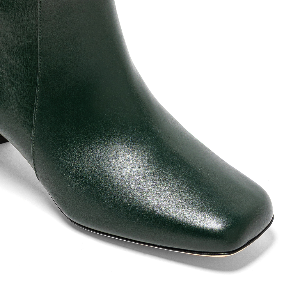 Tronchetti verdi in vera pelle di vitello con tacco da 6 cm