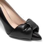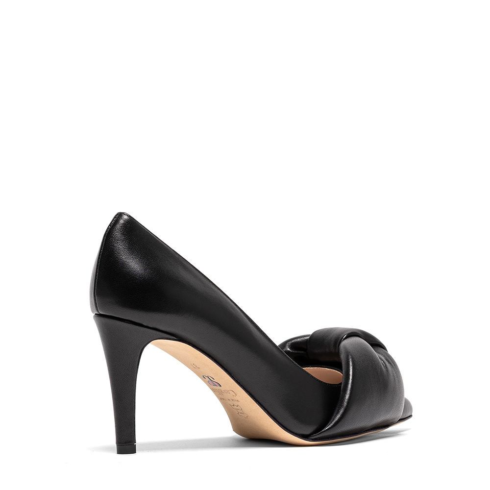 Décolleté nera in vera pelle di nappa con fiocco frontale