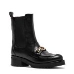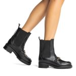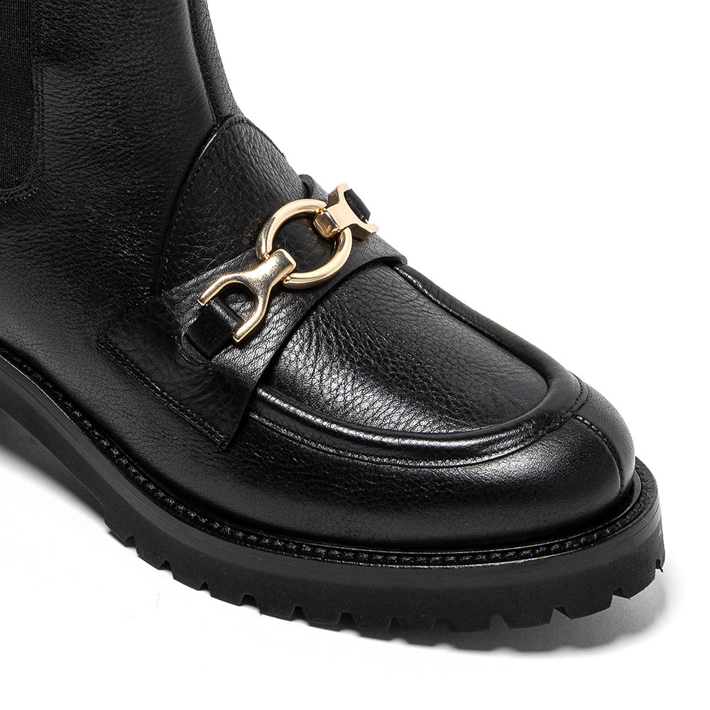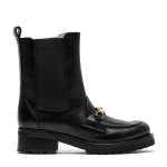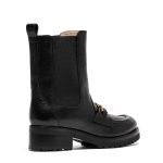 Anfibi neri in vera pelle di vitello con tacco da 4 cm morsetto frontale