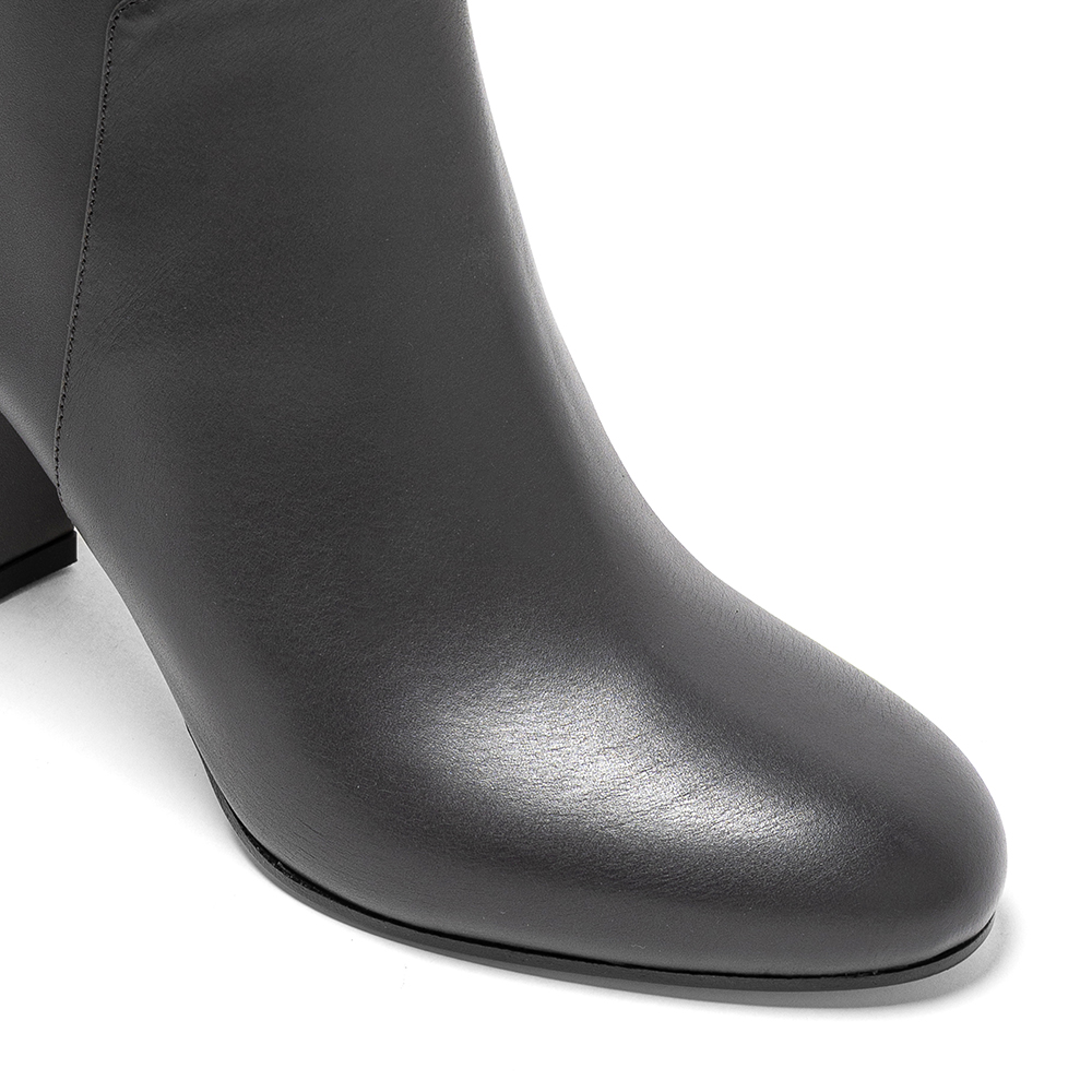 Tronchetti grigi in vera pelle di vitello con tacco da 8,5 cm