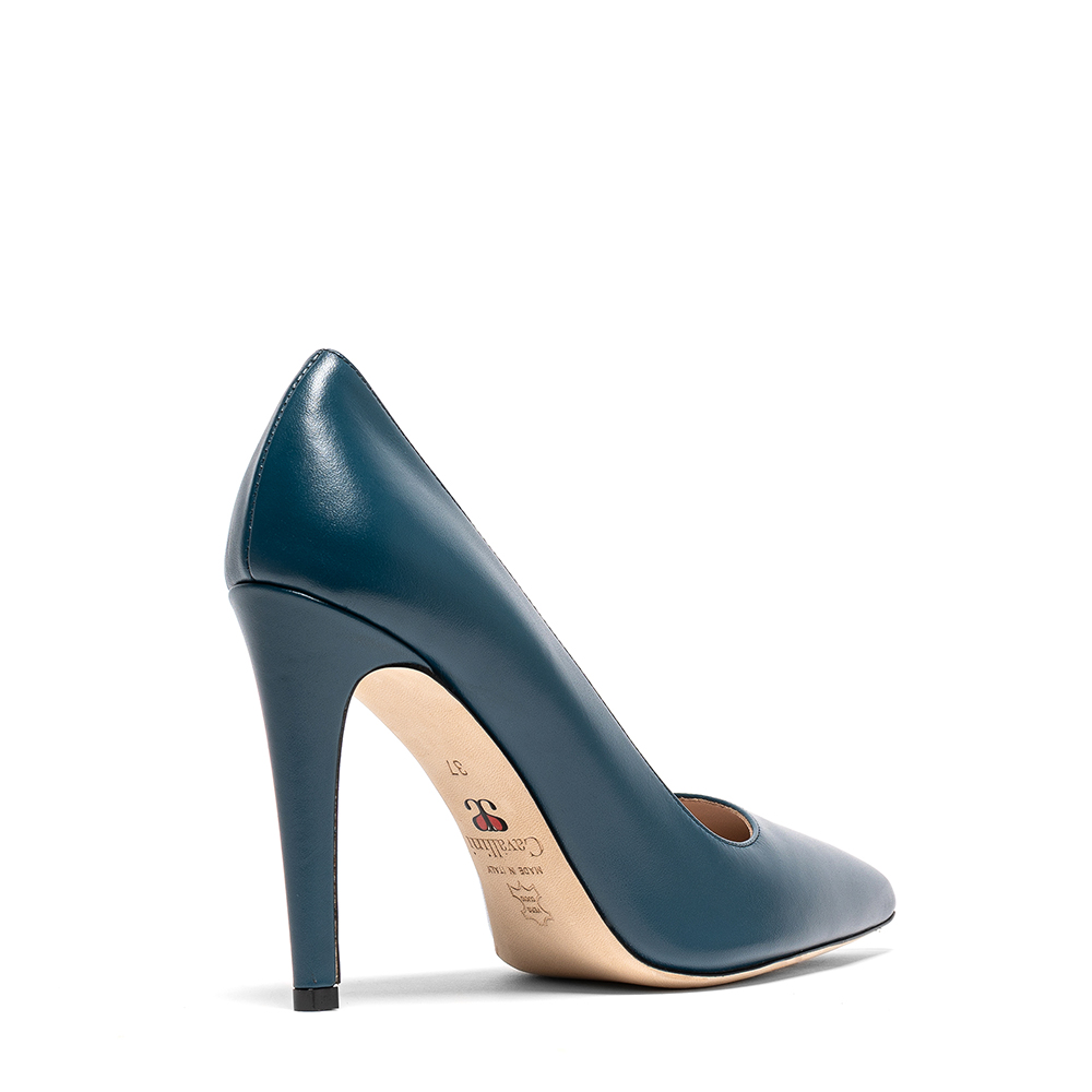 Décolleté ottanio in vera pelle di vitello con tacco da 10,5 cm