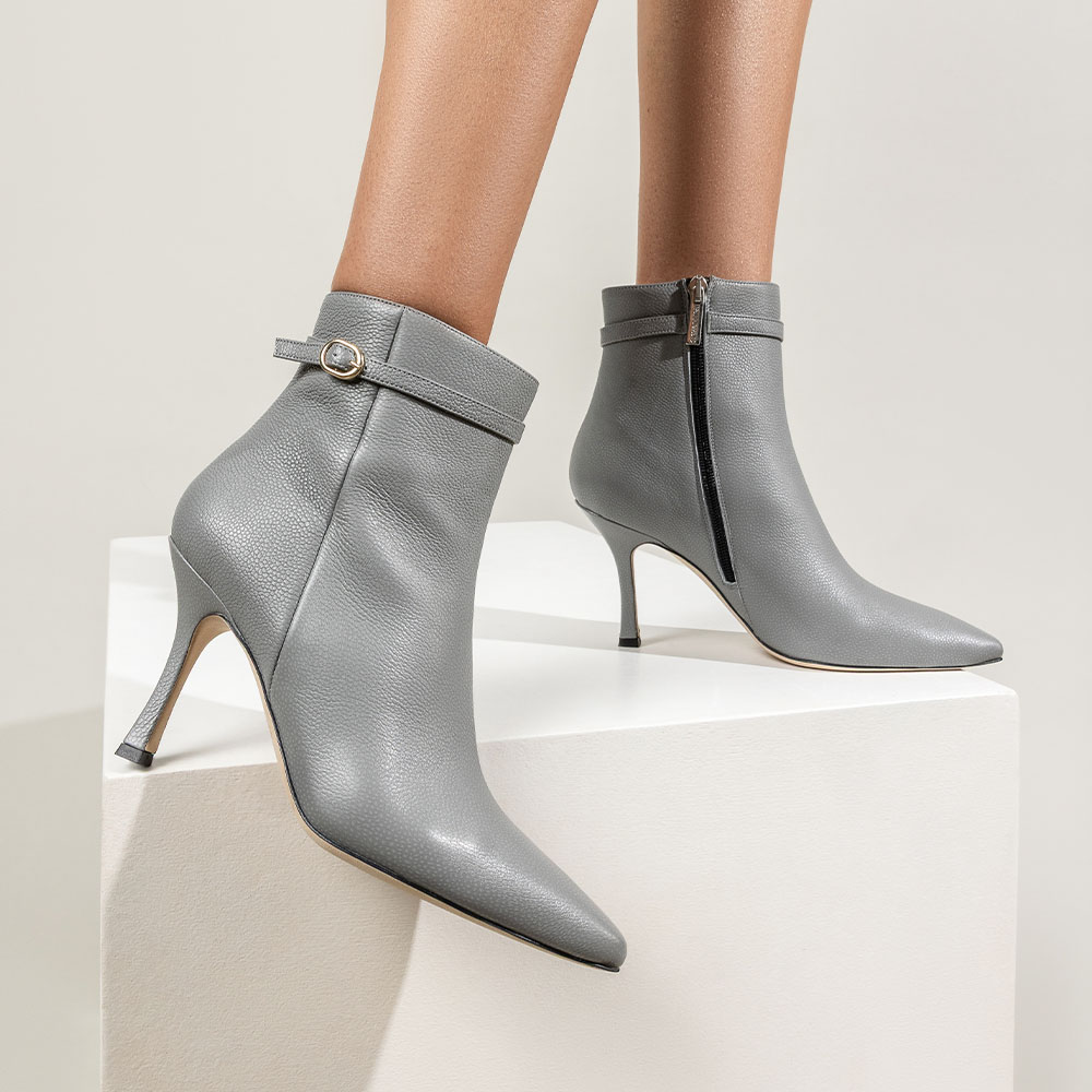 Tronchetti in vera pelle di vitello con tacco da 8,5 cm