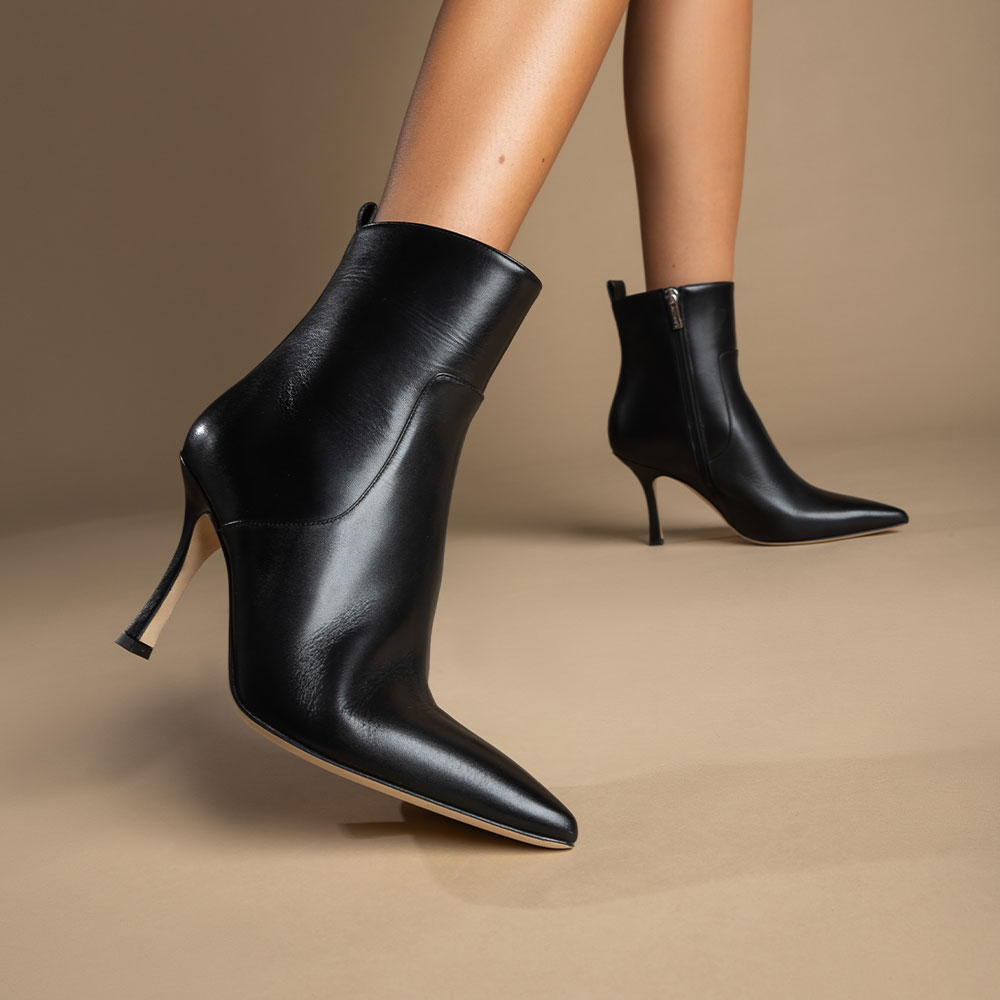 Tronchetti in vera pelle di vitello con tacco da 8,5 cm