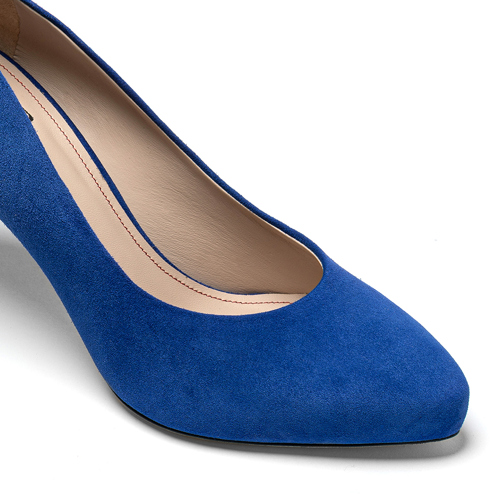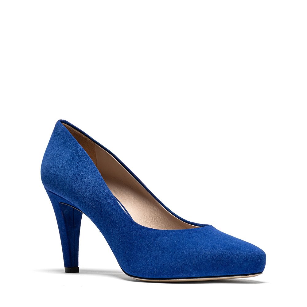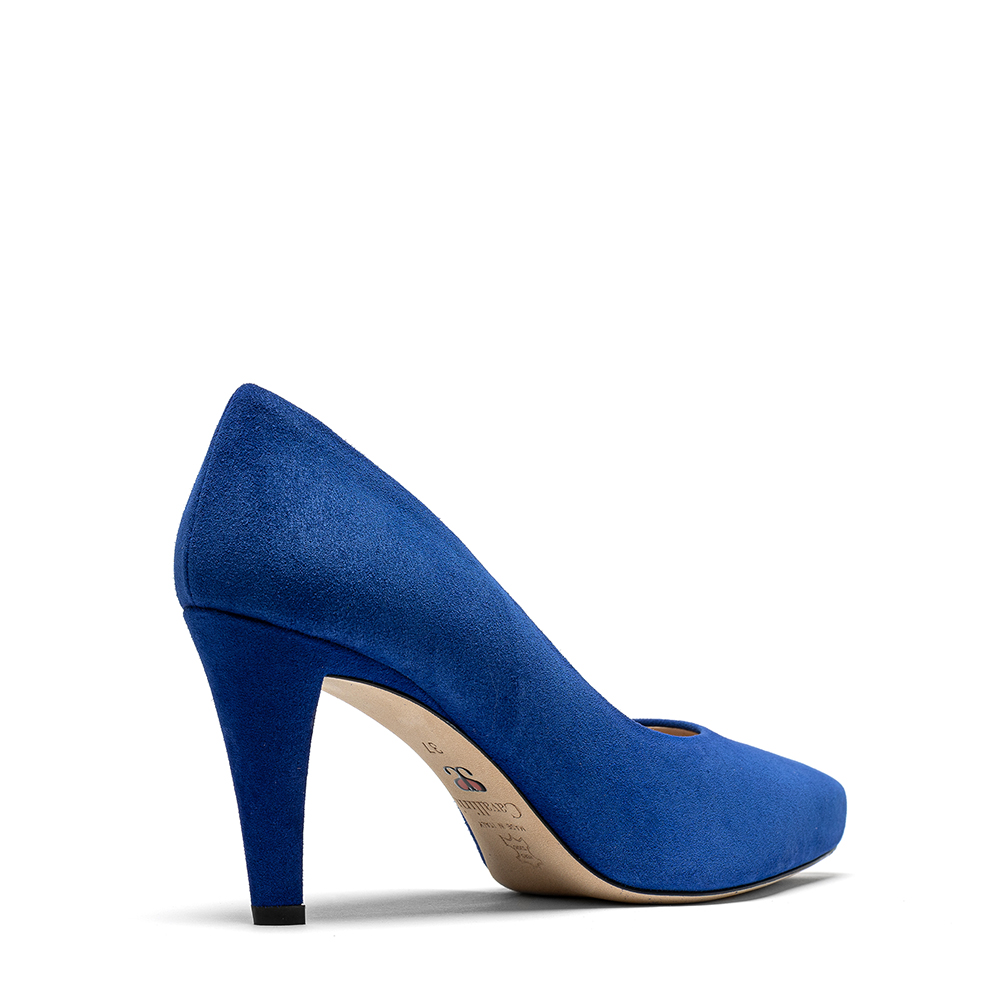 Décolleté blu in vera pelle di camoscio con tacco da 8,5 cm