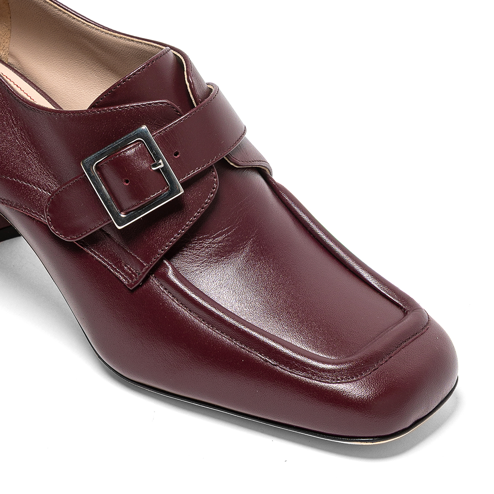 Décolleté prugna in vera pelle di vitello con tacco da 6 cm