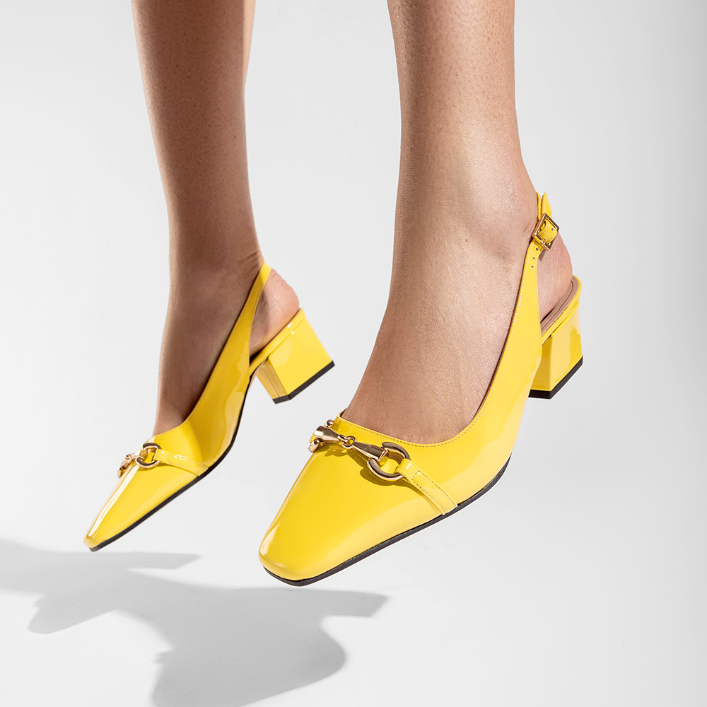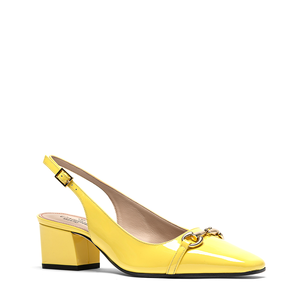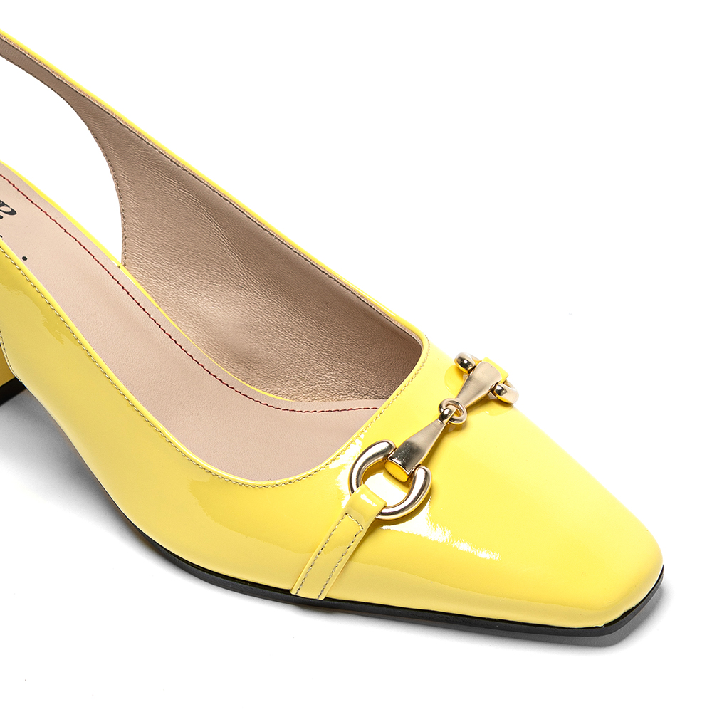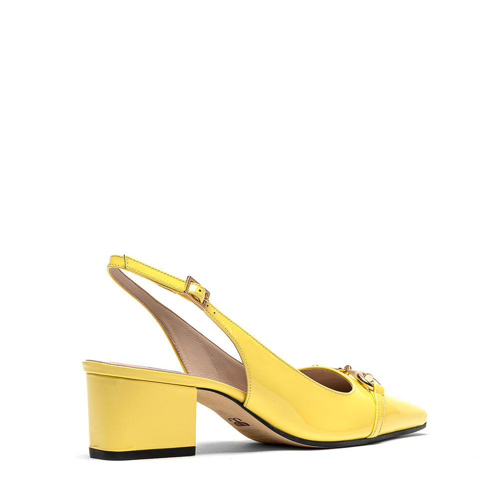 Slingback gialle in pelle di vitello vernice con tacco da 5 cm