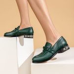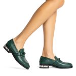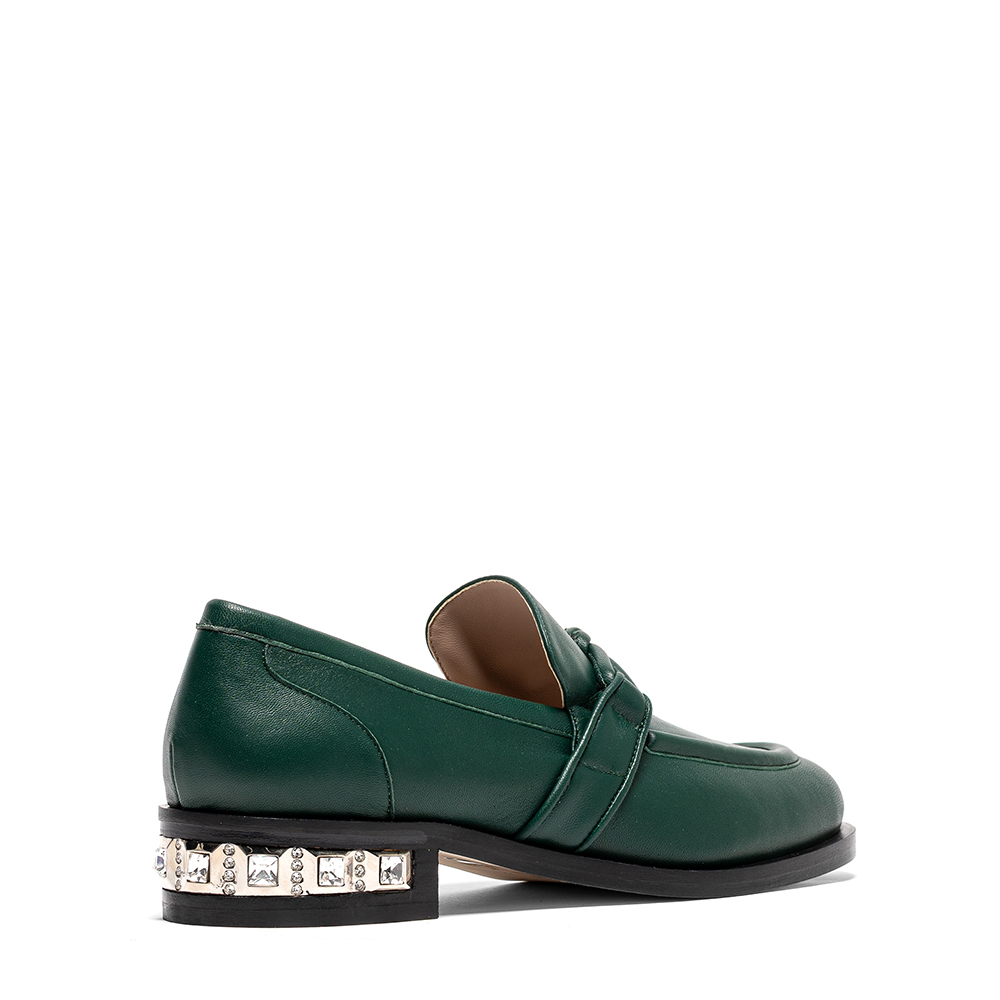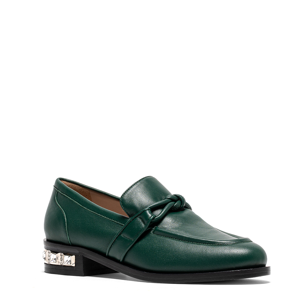 Mocassini in vera pelle di nappa con tacco da 3,5 cm rivestito in veri Swarovski