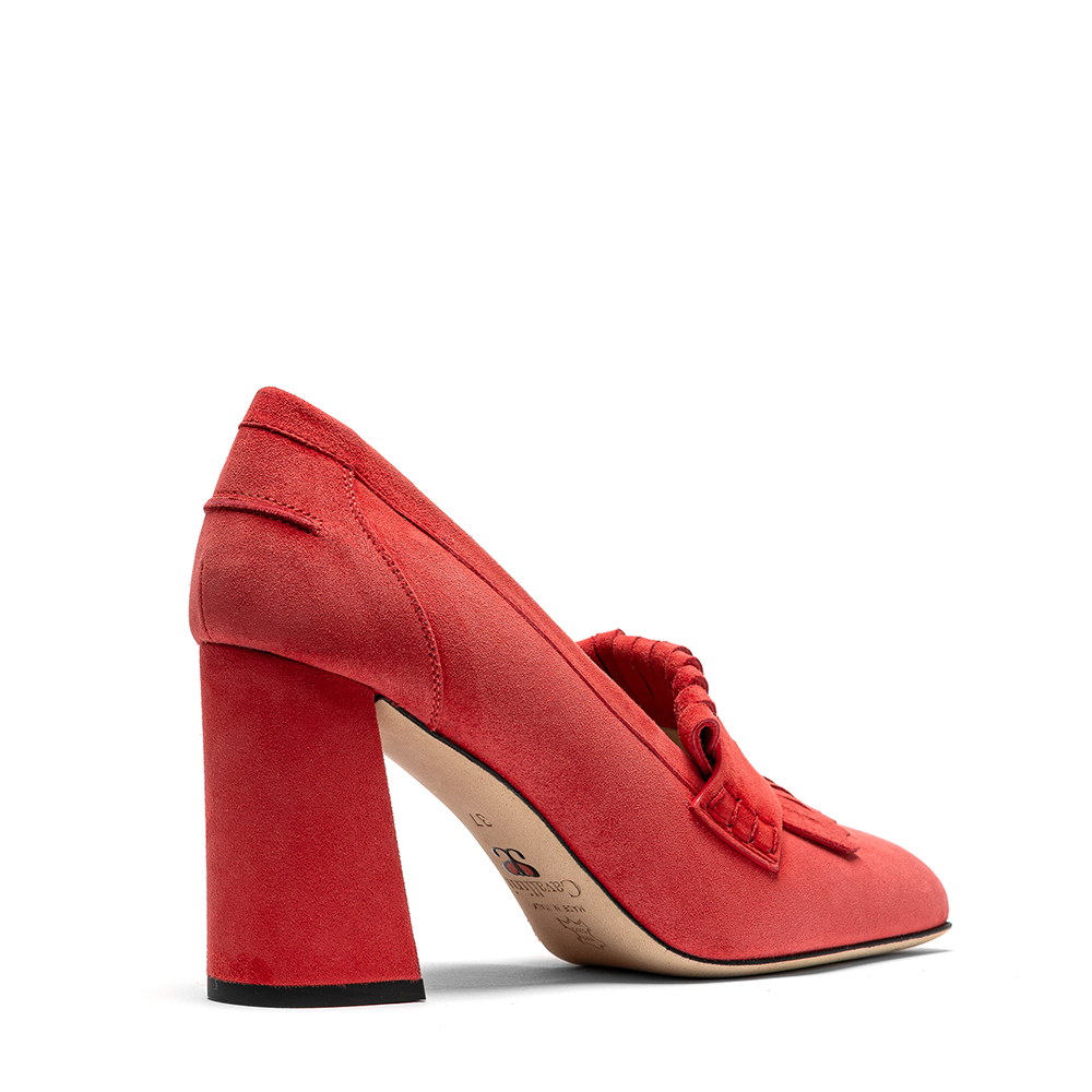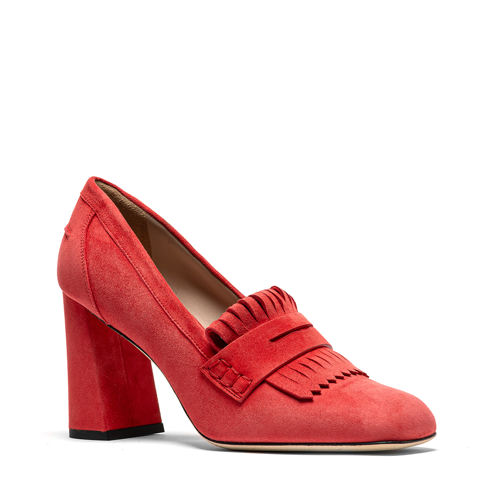Décolleté rosse in vera pelle di camoscio con comodo tacco largo da 8,5 cm