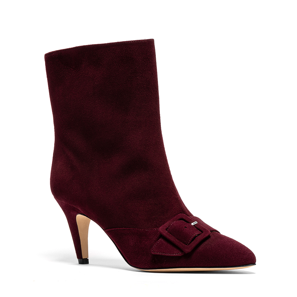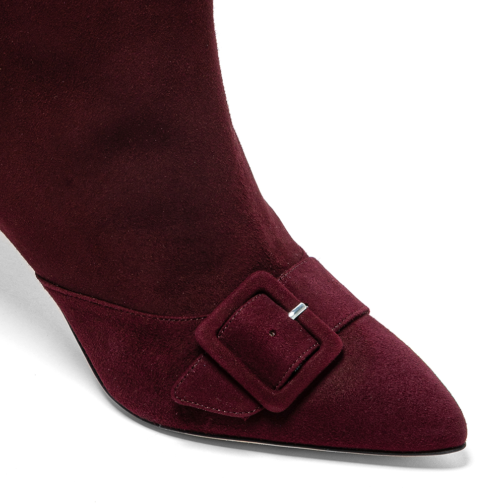 Tronchetti bordeaux in vera pelle di camoscio con tacco da 8 cm