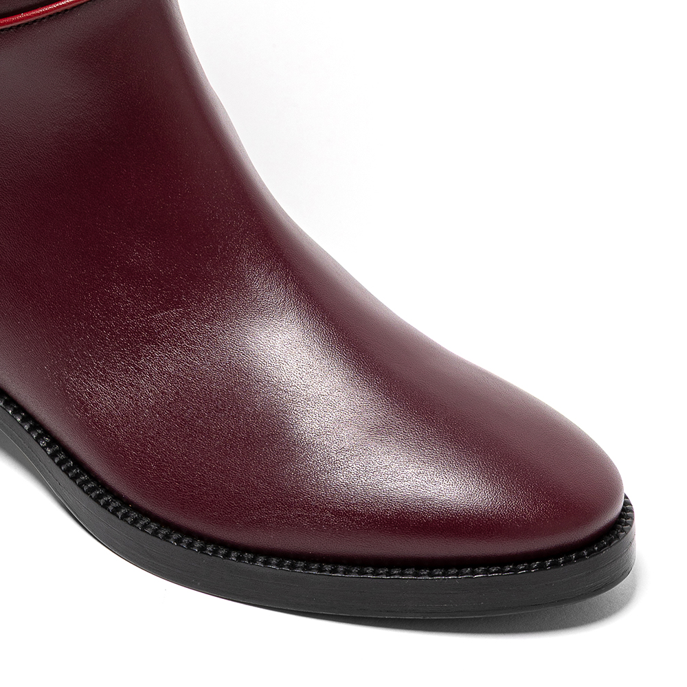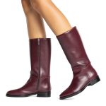 Stivali bordeaux in vera pelle di vitello con tacco da 3 cm
