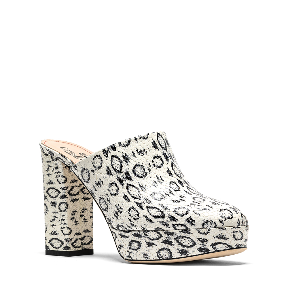 Sabot in vera pelle stampa pitone con tacco da 10,5 cm e plateau da 3 cm