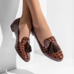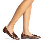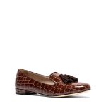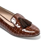 Mocassini in vera pelle stampa coccodrillo con tacco da 1,5 cm e nappine frontali