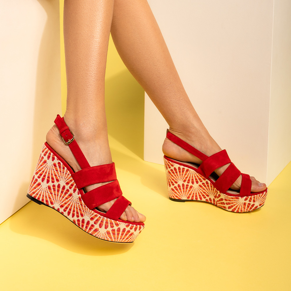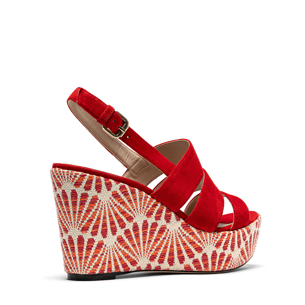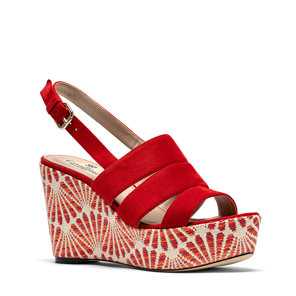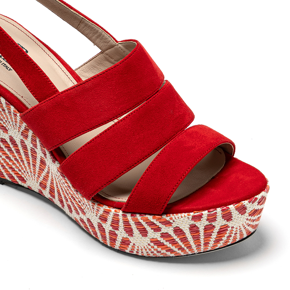 Sandali rossi in vera pelle di nappa con zeppa da 10 cm