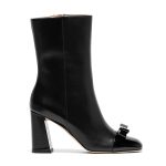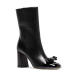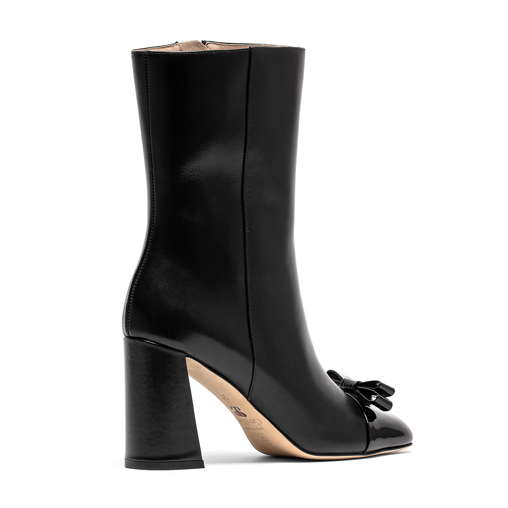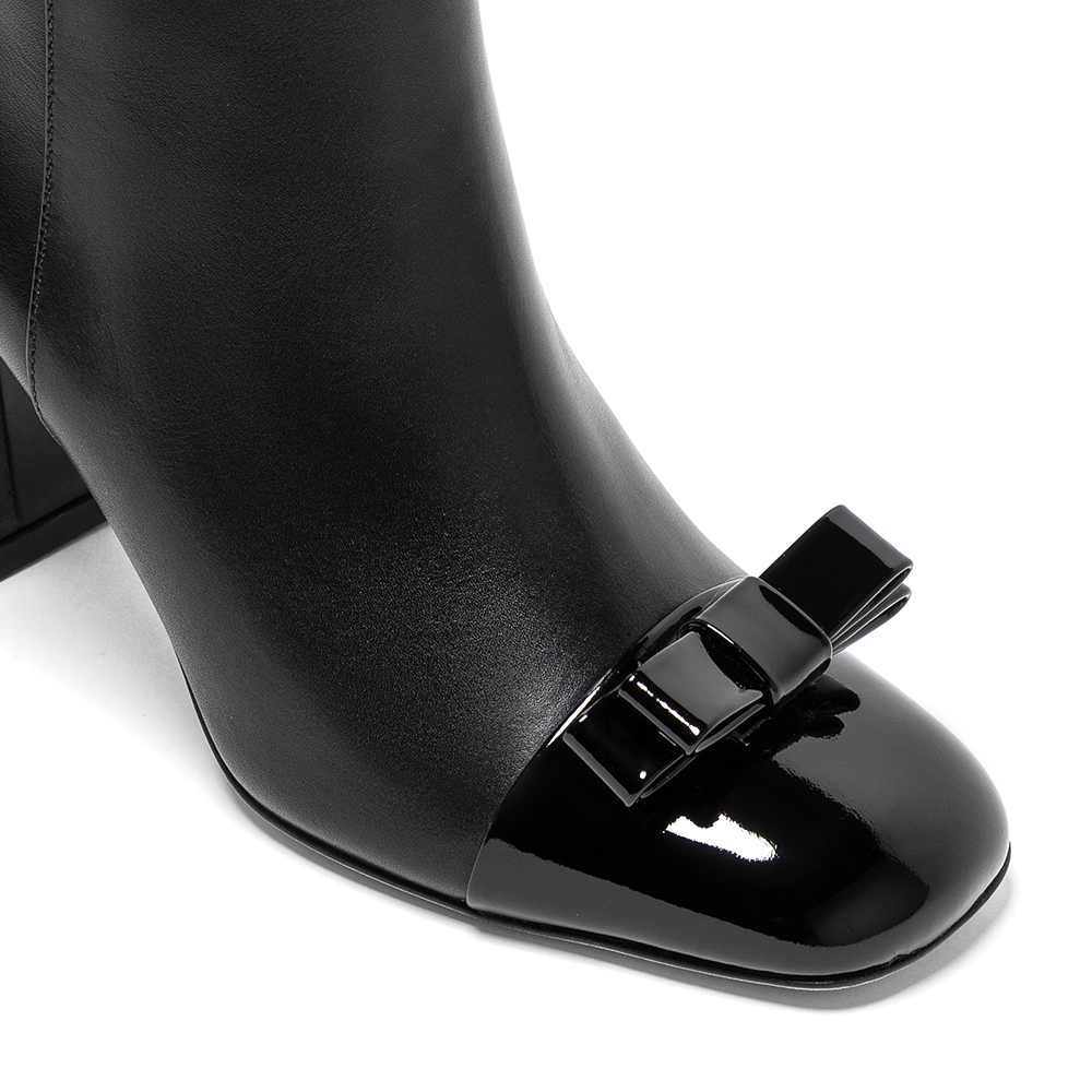 Tronchetti neri in vera pelle di vitello con tacco da 8,5 cm e fiocco frontale
