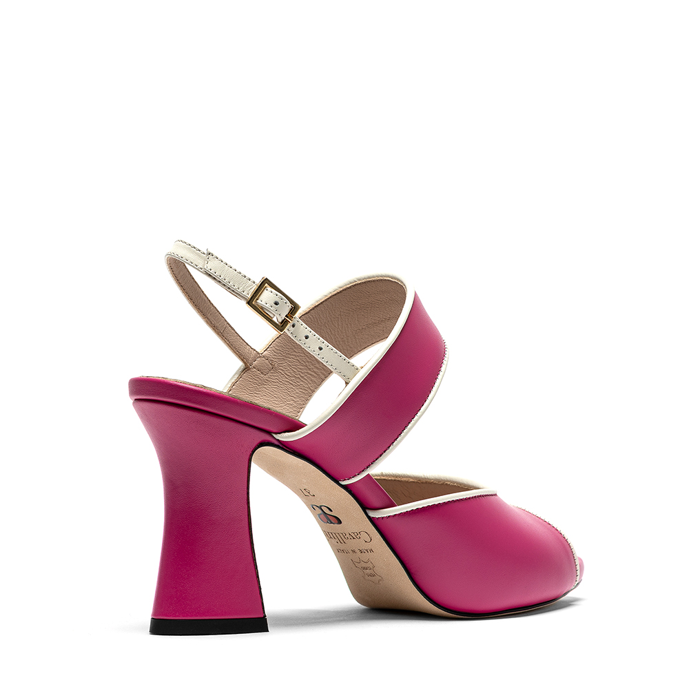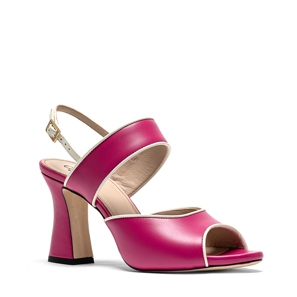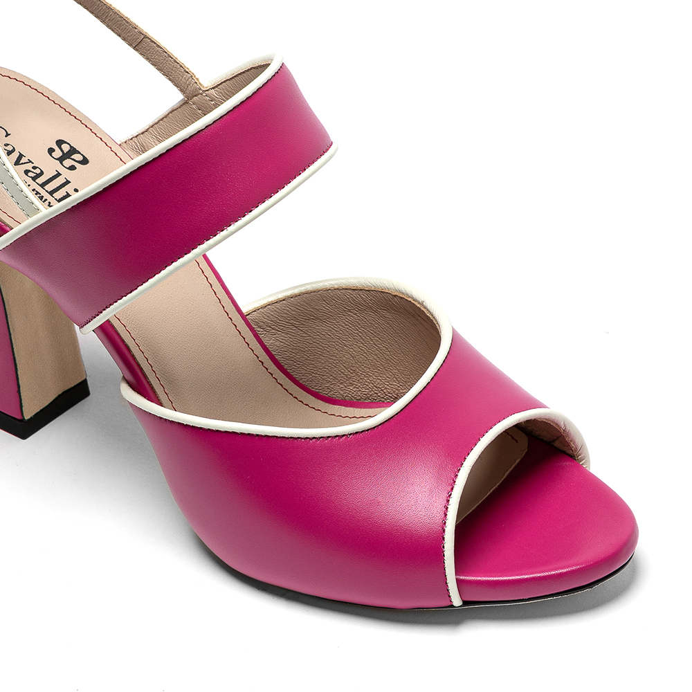 Sandali fucsia in vera pelle di vitello con tacco da 8,5 cm