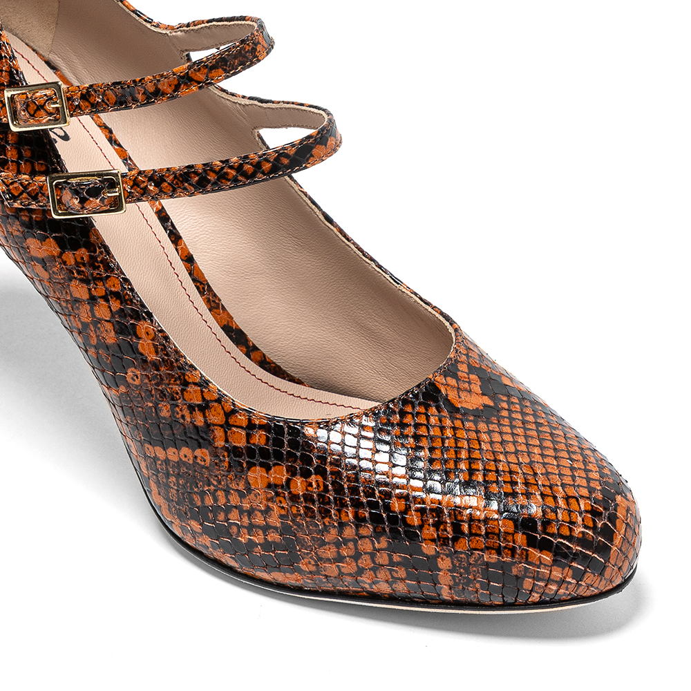 Décolleté in vera pelle stampa pitone con tacco da 8 cm e plateau interno da 1 cm