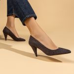 Décolleté in vera pelle glitter con tacco da 8 cm
