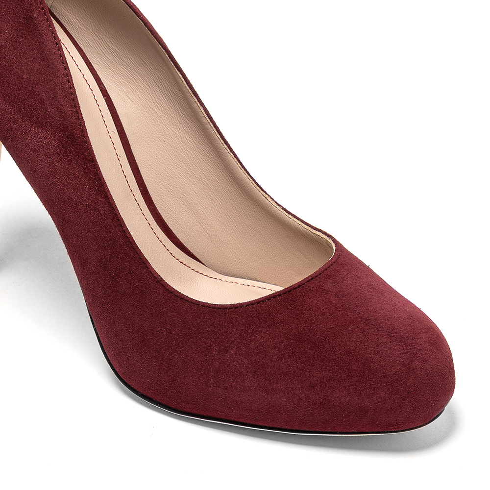 Décolleté bordeaux in vera pelle di camoscio con tacco da 11 cm e plateau interno da 1,5 cm
