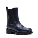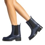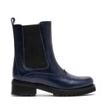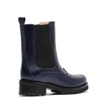 Anfibi blu in vera pelle di vitello con tacco da 4 cm ed elastici laterali