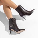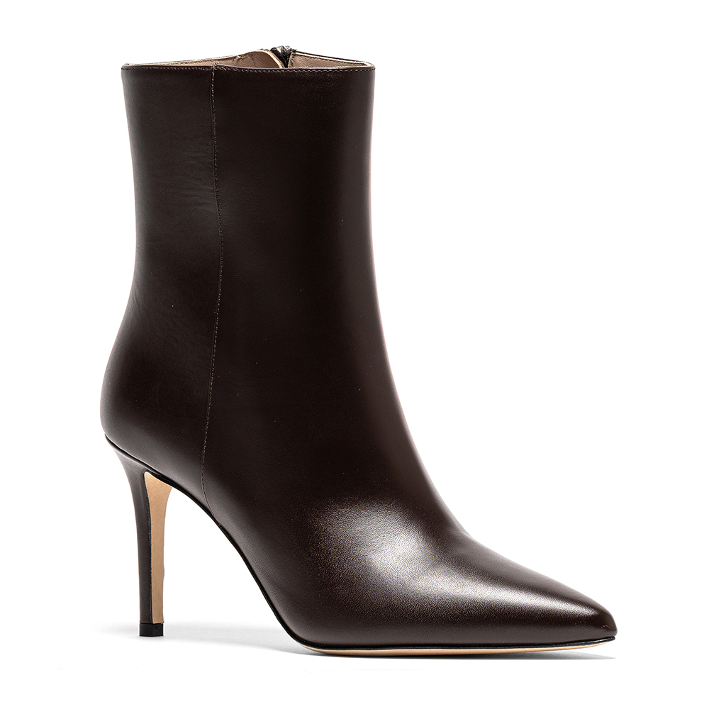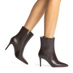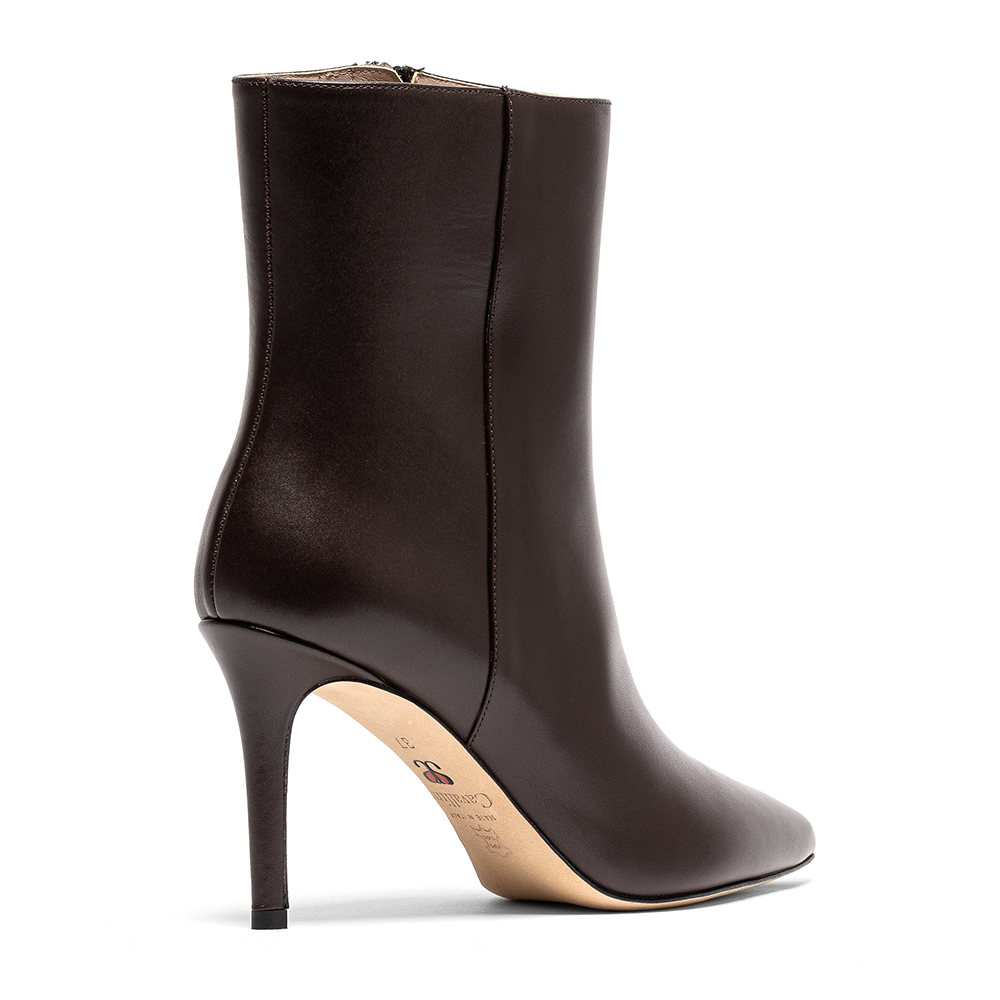 Tronchetti marroni in vera pelle di nappa con tacco da 9 cm