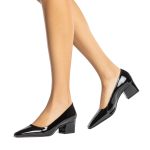 Décolleté nera in pelle effetto vernice con tacco da 5 cm