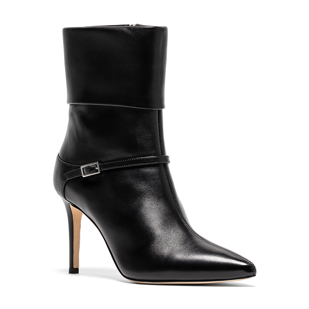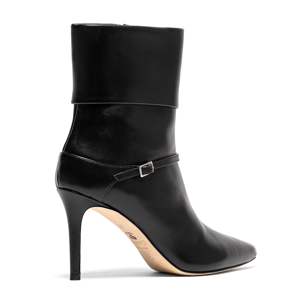 Tronchetti neri in vera pelle di nappa con tacco da 9 cm