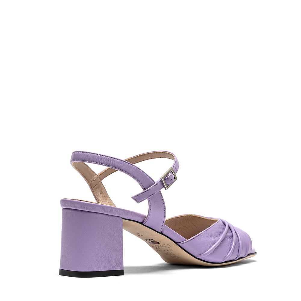 Sandali lilla in vera pelle di nappa con tacco da 6,5 cm